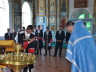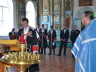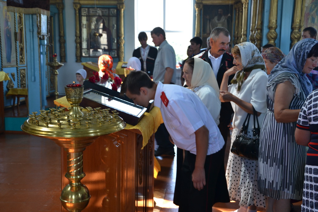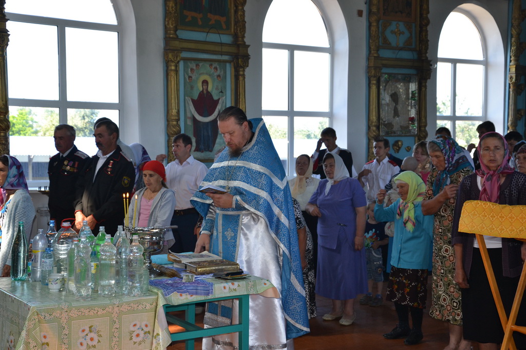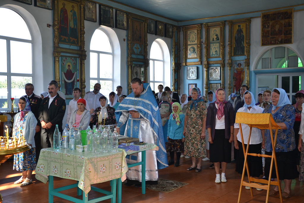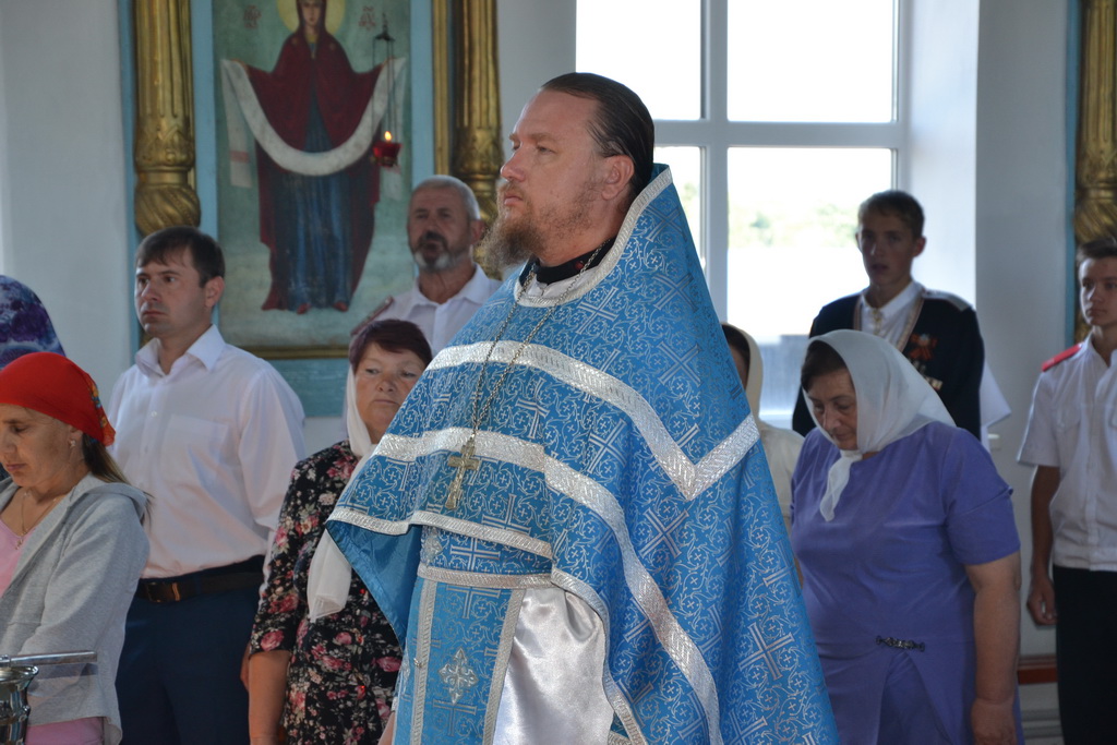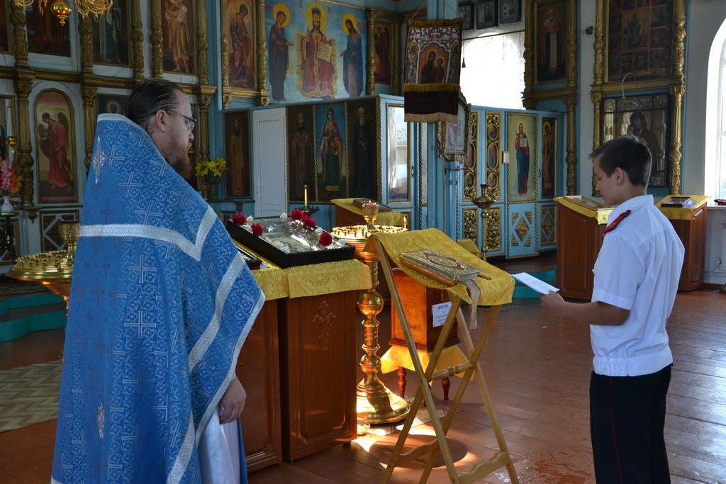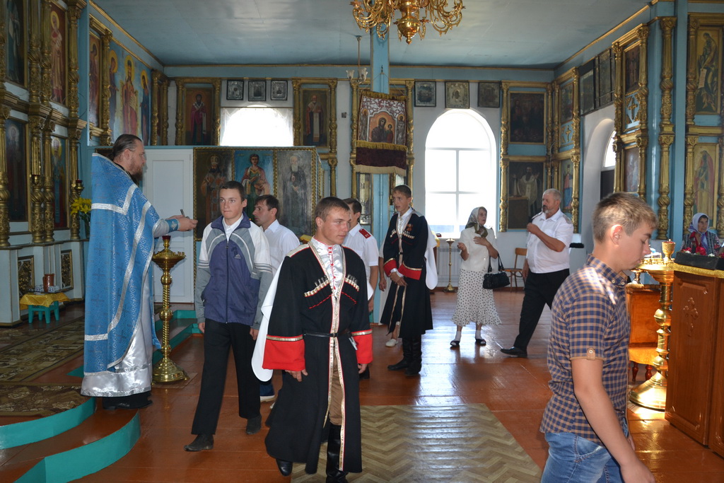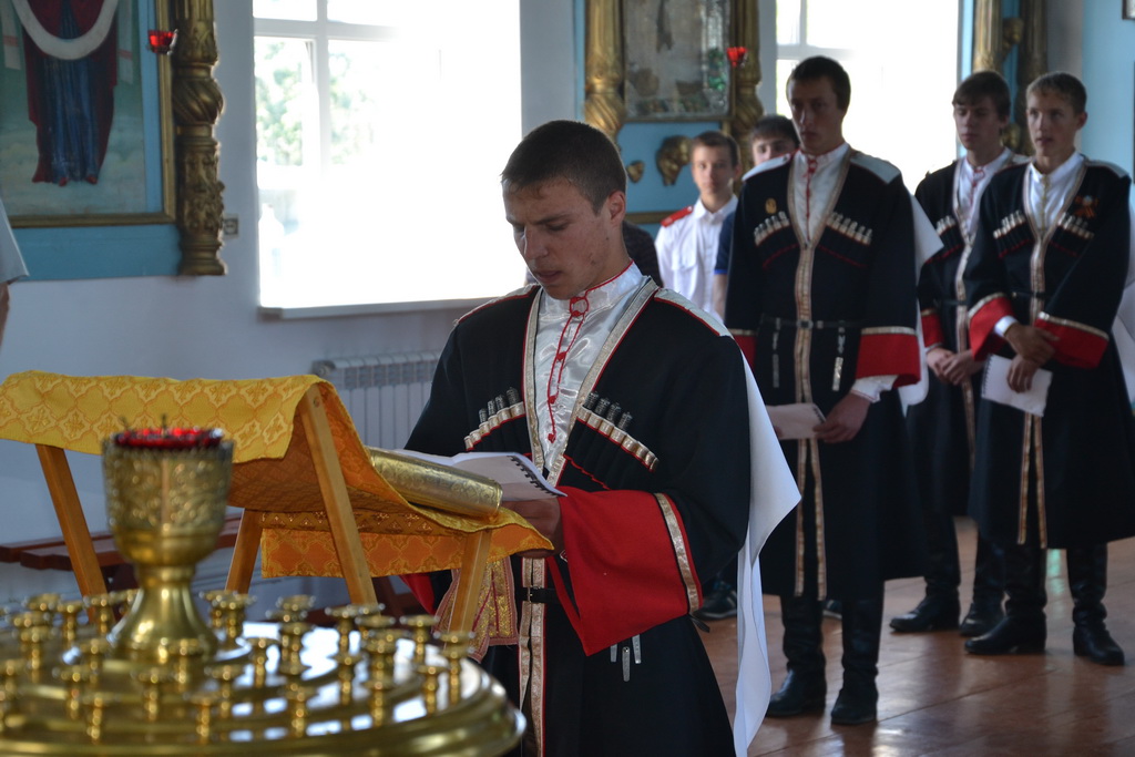 После торжественной клятвы, засвидетельствованной целованием святых Креста и Евангелия, казаков поздравили настоятель храма и станичный атаман Иван Петрович Пустовой.