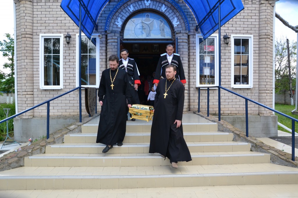 Святыни Пятигорской епархии останутся в Свято-Тихоновском храме села Курджиново до 11-00 25 мая, после чего будут перенесены в храм благоверного князя Димитрия Донского, расположенный на территории 34-й отдельной мотострелковой бригады «Горная».