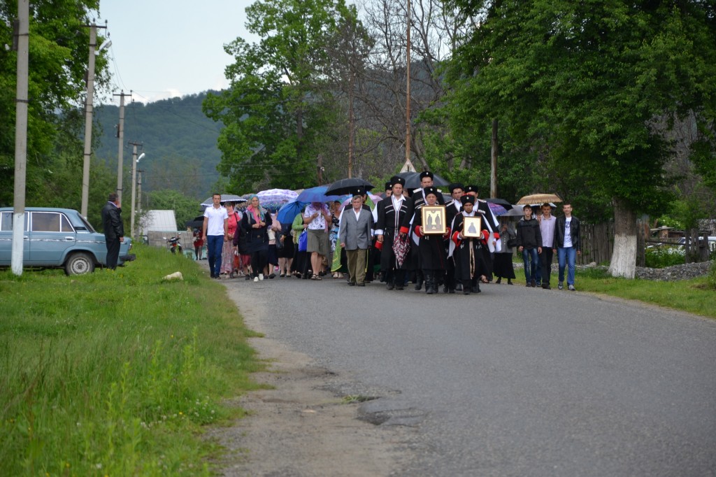 24 мая в день памяти равноапостольных Мефодия и Кирилла Крестный ход со святынями Пятигорской епархии — частицами мощей преподобного Сергия Радонежского и его родителей Кирилла и Марии, приуроченный к 700-летней годовщине со дня рождения преподобного Сергия, прибыл в село Курджиново, которое является последним населенным пунктом Карачаево-Черкесии на границе с Краснодарским краем.