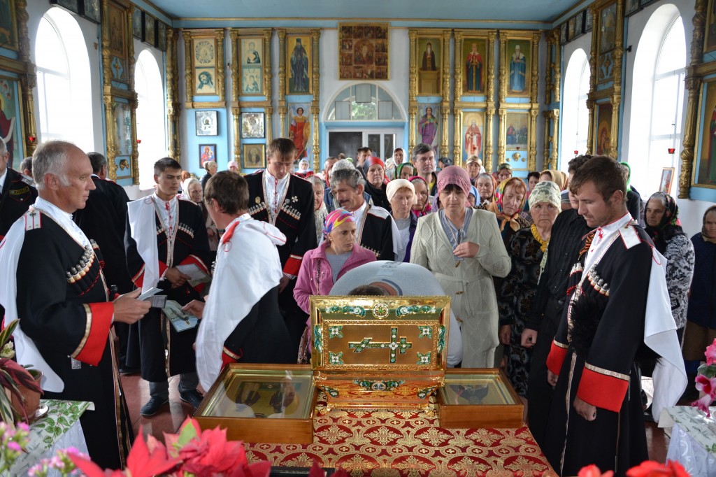 Святыни Пятигорской епархии встречали казаки станичного общества и многочисленные верующие. После прибытия Крестного хода в Свято-Никольский храм станицы было совершено всенощное бдение.