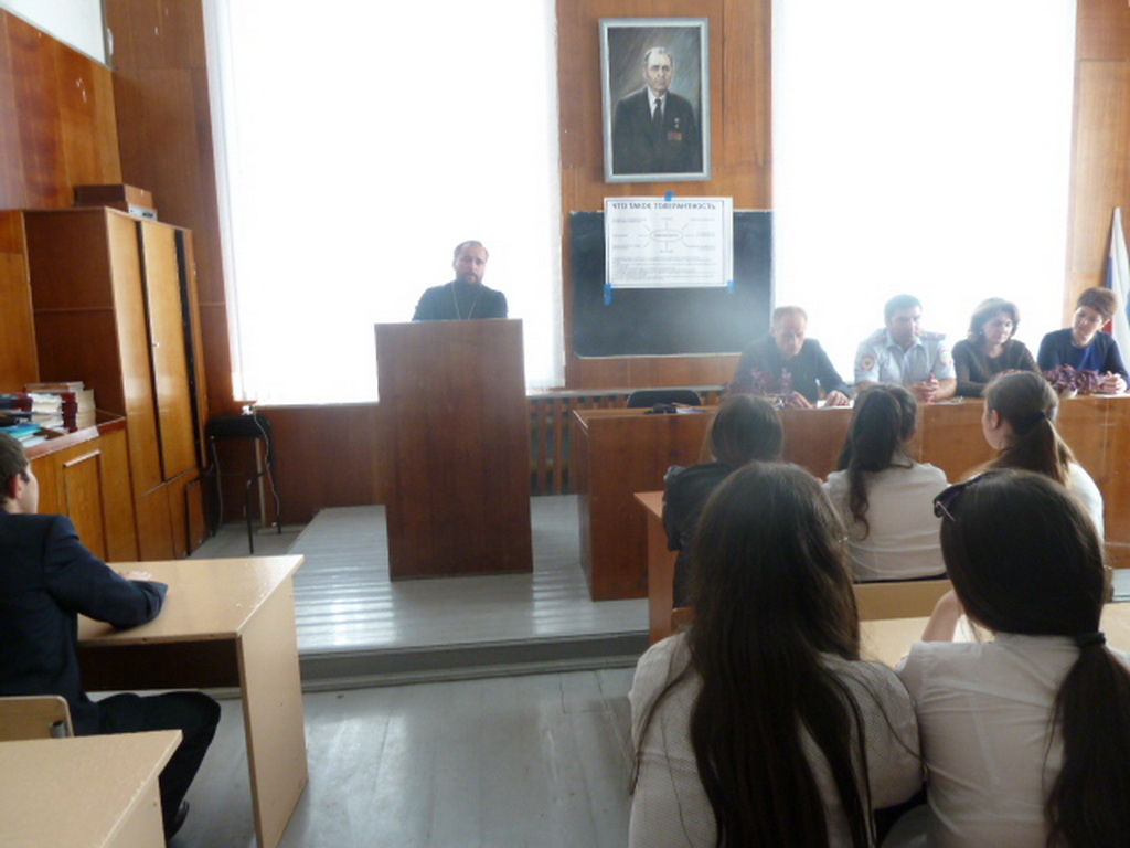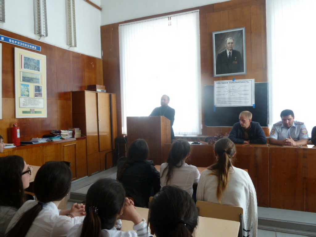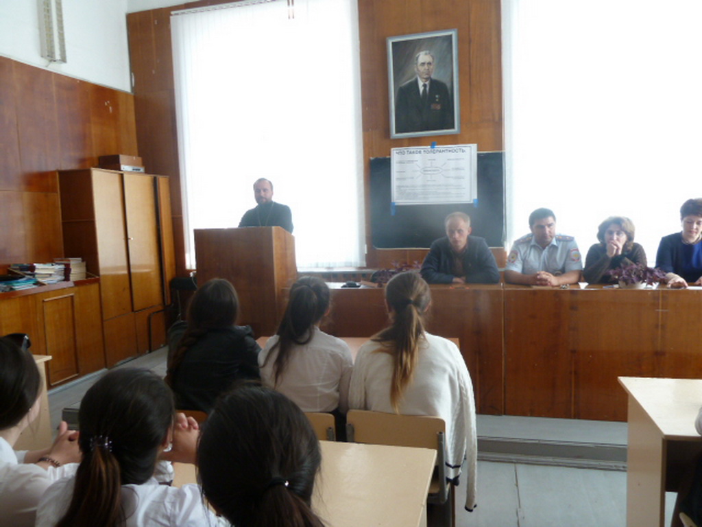 «Предупрежден — значит вооружен» — с такими словами обратился к учащимся настоятель православного храма города Карачаевска. Священнослужитель в своем выступлении особенно подчеркнул недопустимость использования в риторике, оправдывающей насилие, вероучительных истин. «Божественное откровение не может призывать человека лишать жизни другого человека, потому, что жизнь — это Божий дар. Отбирая то, что дал человеку Бог, убийца становится преступником не только против человеческих законов, он нарушает и Божественный запрет. Как можно называть себя праведником тот, кто совершает одно из самых страшных преступлений против своего Создателя, отнимая жизнь у Его творения? Задавайте себе этот вопрос каждый раз, когда ваш ум смущает экстремистская пропаганда. Такое упражнение поможет вам избежать опасности быть вовлеченными в деятельность террористических организаций» — отметил священник.