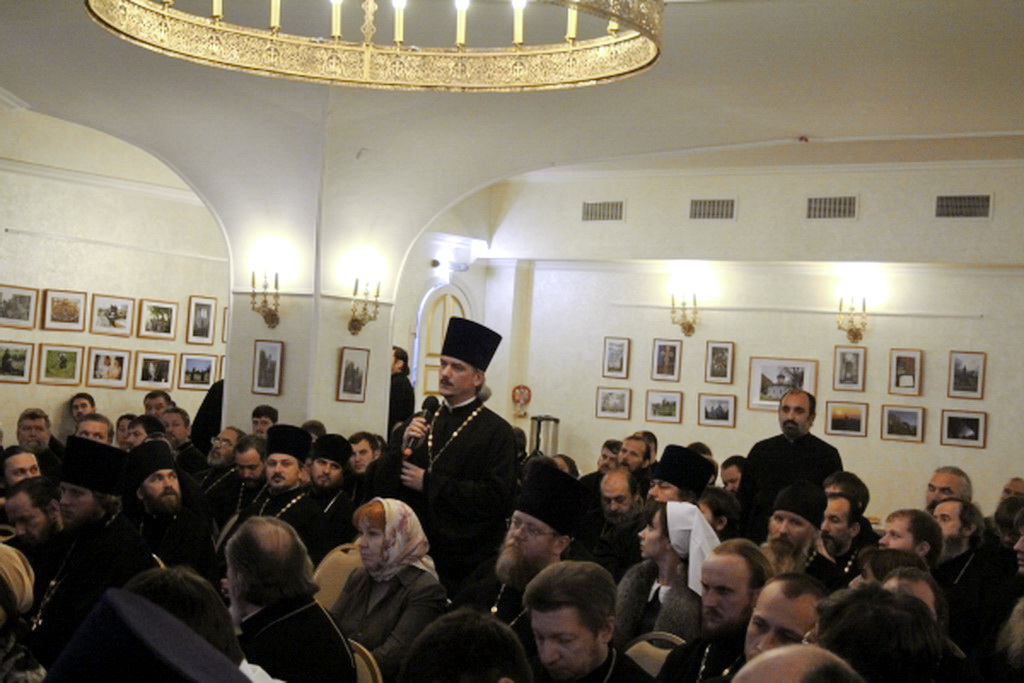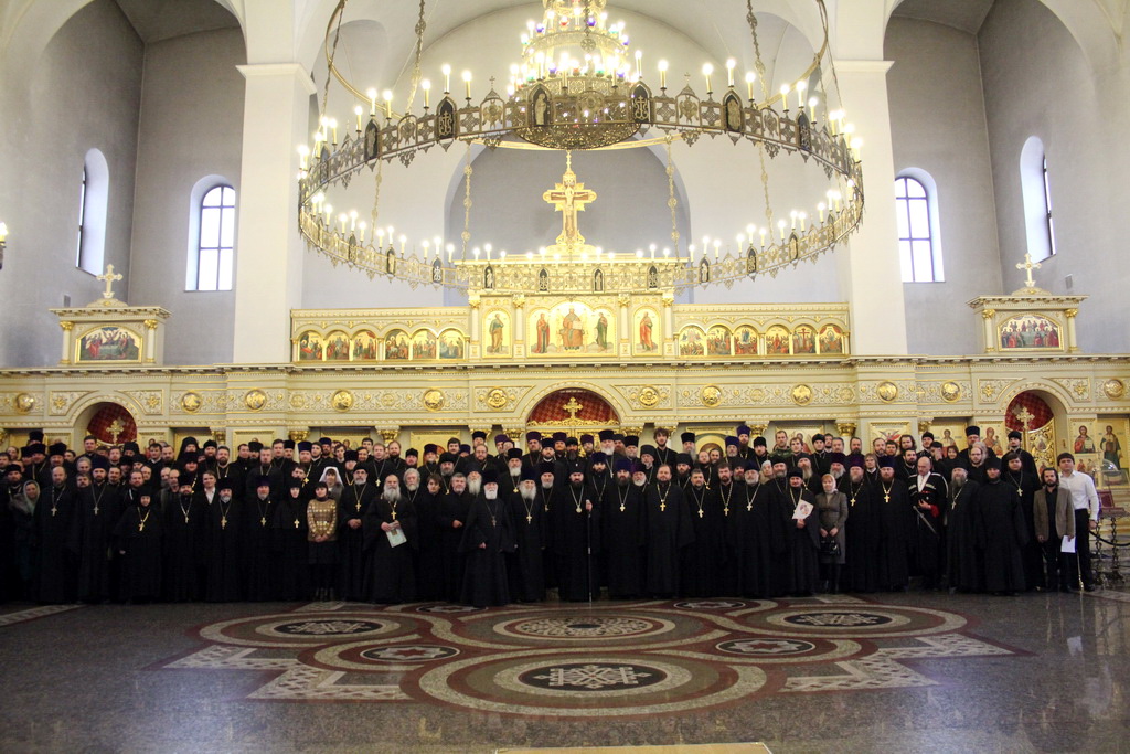 Открывая работу Собрания, архиепископ Феофилакт назвал количество приходов и духовенства в епархии, рассказал о произошедших изменениях в составе клира.