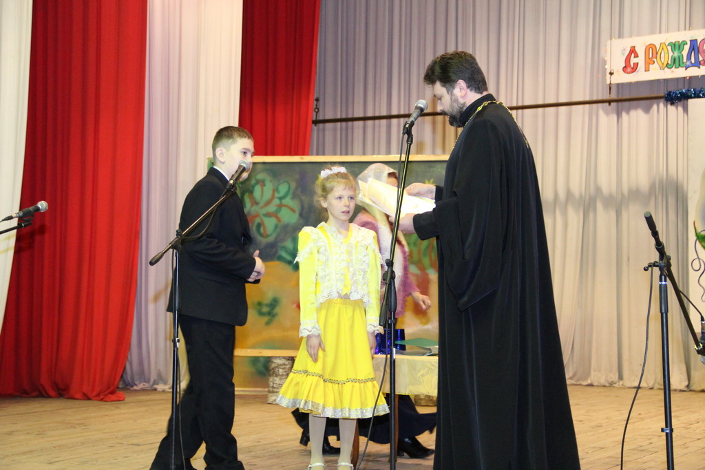 По окончании утренника состоялось торжественное вручение дипломов победителям и участникам муниципального тура олимпиады по Основам православной культуры, а также победителям епархиального этапа художественного конкурса «Красота Божиего Мира». Призы за рисунки получили все дети, принимавшие участие в конкурсе.