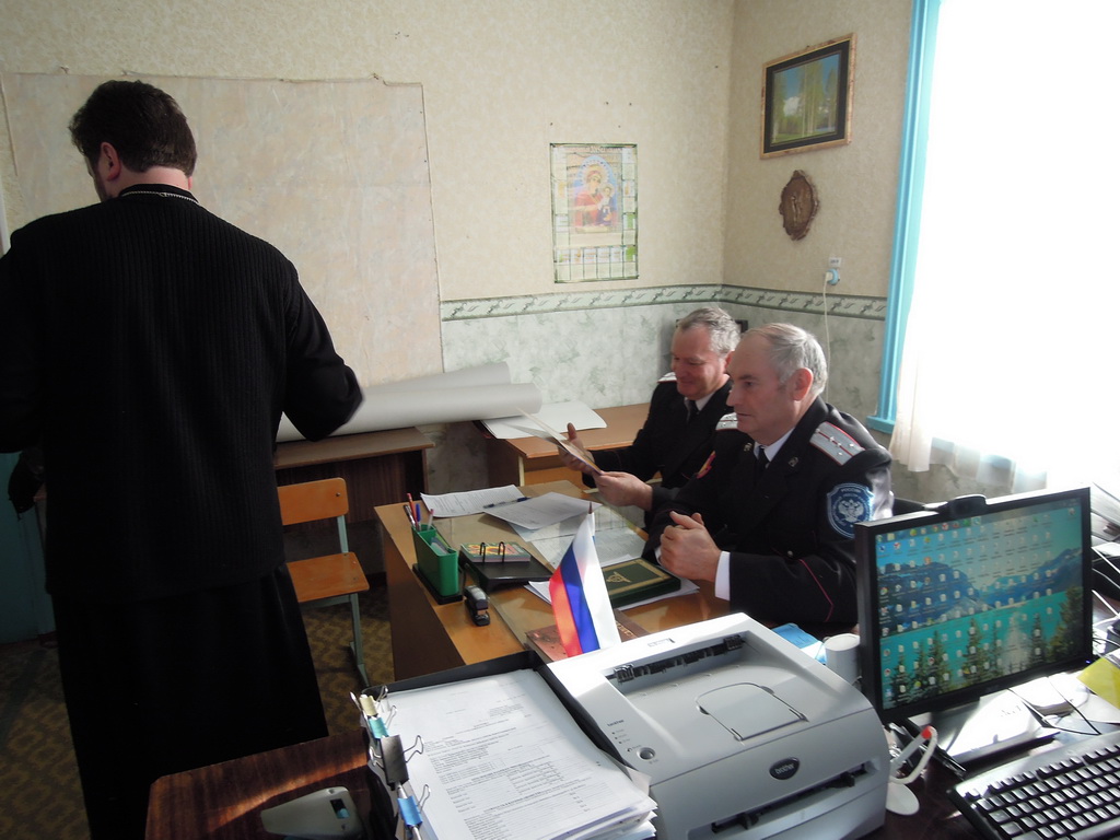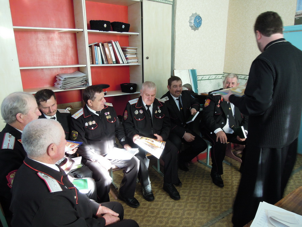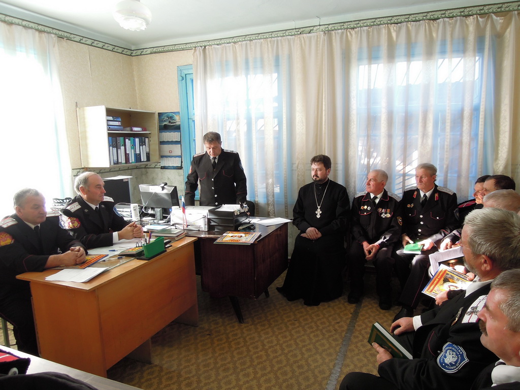 Перед началом работы совета с наступающим праздником Рождества Христова собравшихся поздравил благочинный Южного Карачаево-Черкесского церковного округа протоиерей Евгений Субтельный, который вручил атаманам памятные подарки.