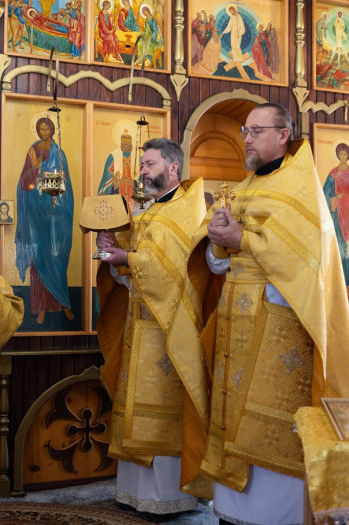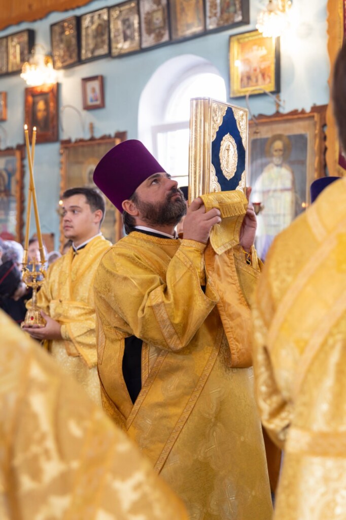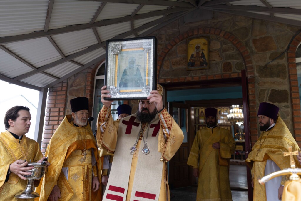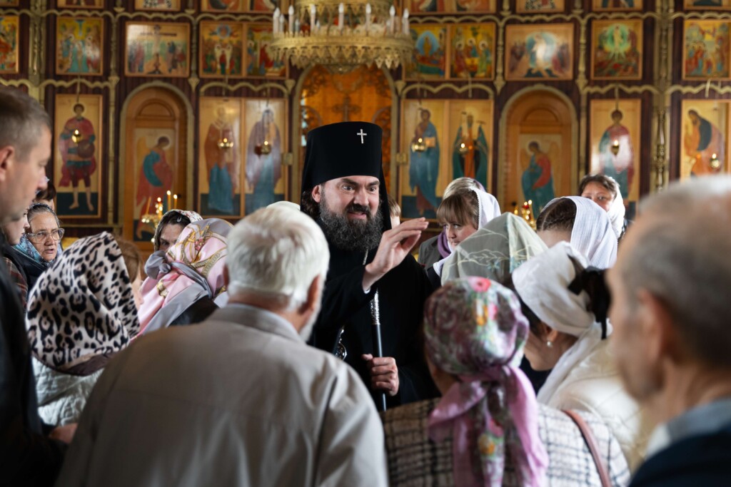 После литургии и уставного крестного хода Владыка совершил славление святителю Тихону и обратился к верующим с проповедью.Затем архиепископ Феофилакт пообщался с прихожанами.