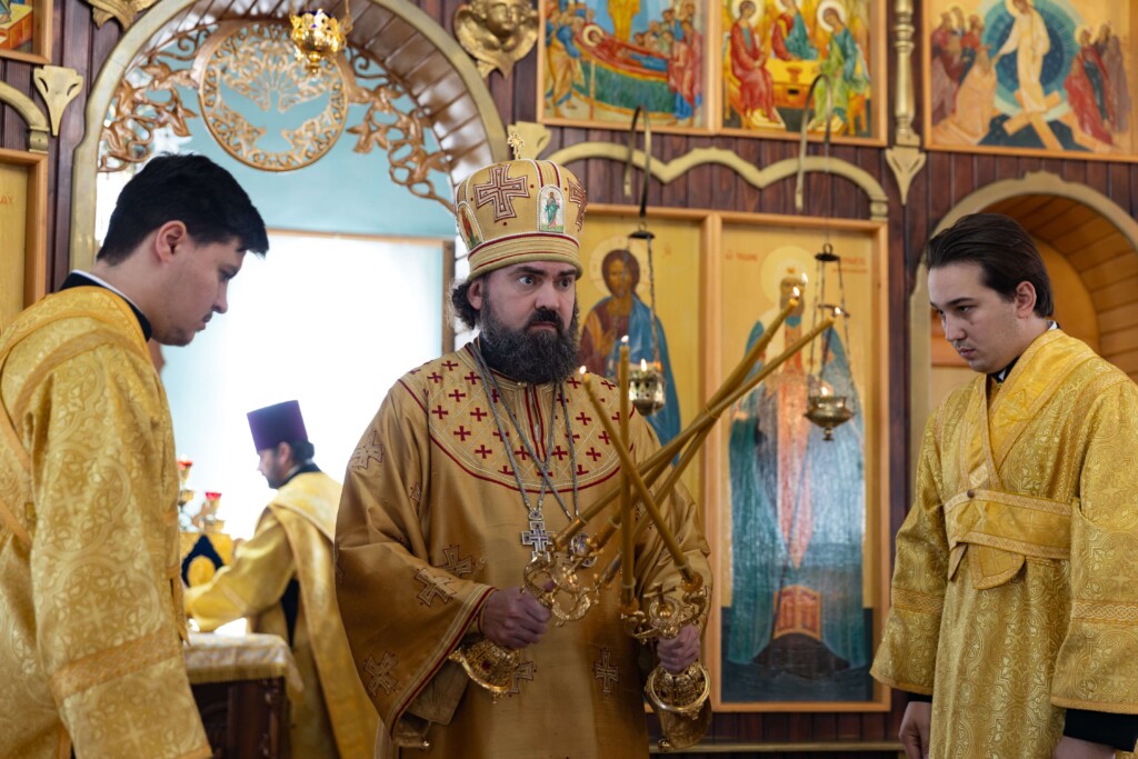 9 октября 2025, в день памяти Святителя Тихона, патриарха Московского и всея Руси, архиепископ Пятигорский и Черкесский Феофилакт возлавил престольные торжества в Тихоновском храме села Курджиново (КЧР).Перед началом богослужения Архипастыря встречали казачата из кадетского класса. Архиерею за Божественной литургией сослужило духовенство храмов Южного Карачаево-Черкесского церковного округа во главе с благочинным протоиереем Евгением Субтельным и протодиакон Димитрий Куба.