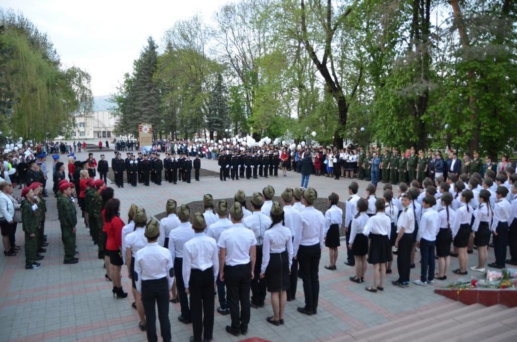 5 мая у мемориала воинам, павшим в годы Великой Отечественной войны, станицы Зеленчукской состоялся торжественный прием учащихся школ района в юноармейцы.