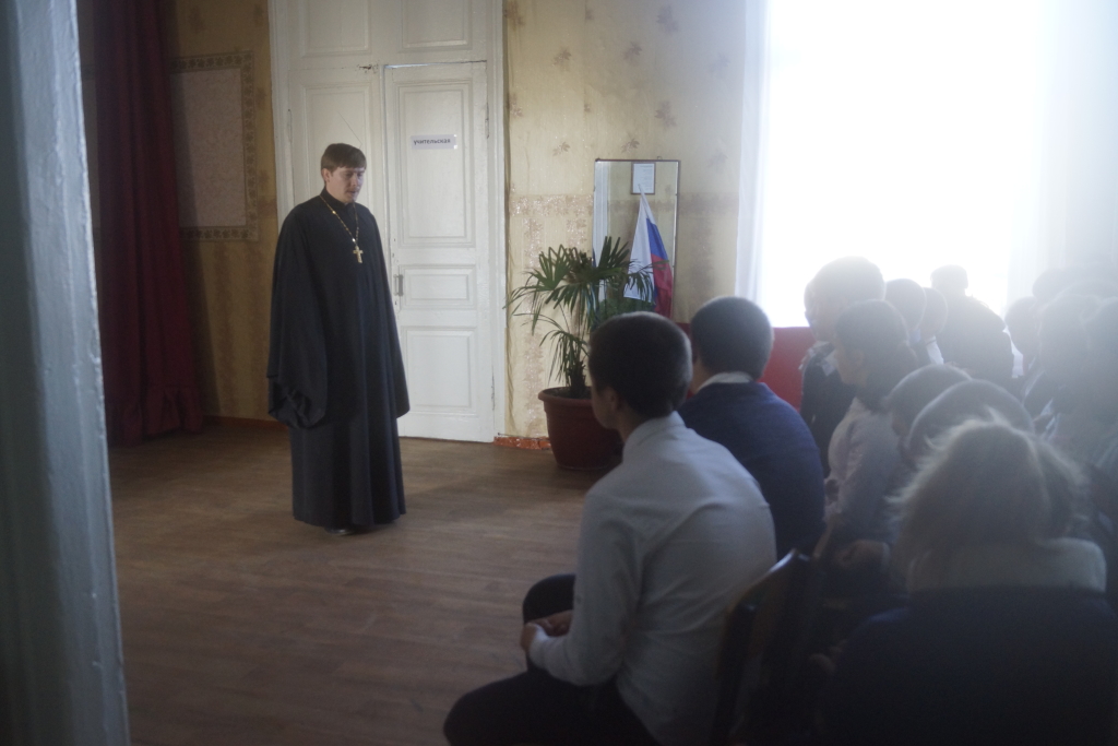 Священнослужитель разъяснил учащимся понятие «новомученик» и рассказал о святых исповедниках Русской Земли XX века.