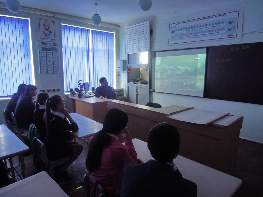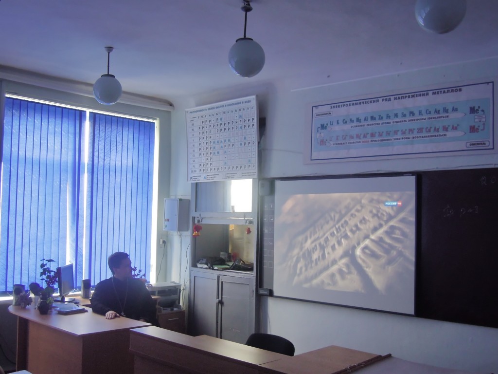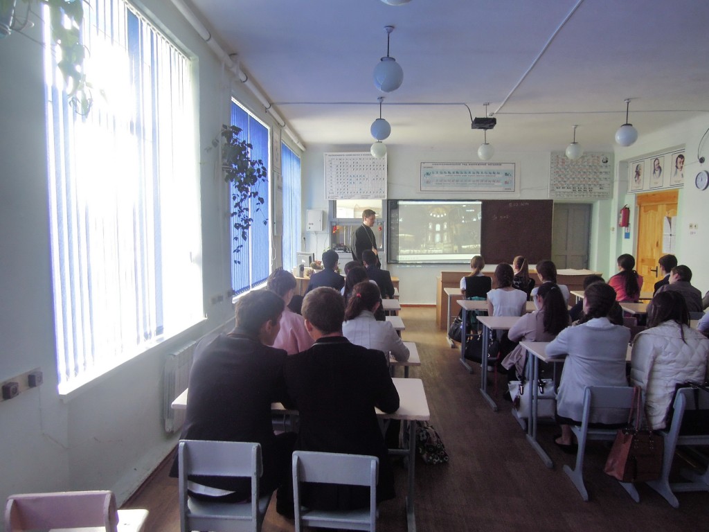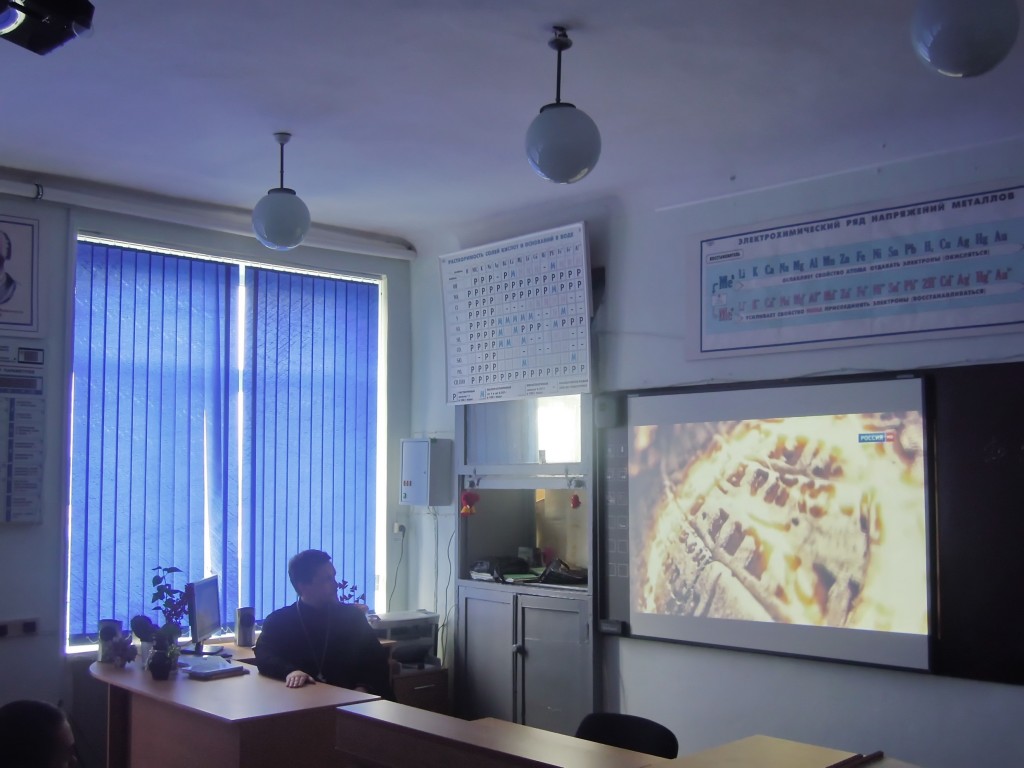 После просмотра фильма священник ответил на многочисленные вопросы учащихся, связанные с употреблением славянского языка за богослужением, а также о сходствах и различиях современных славянских языков.