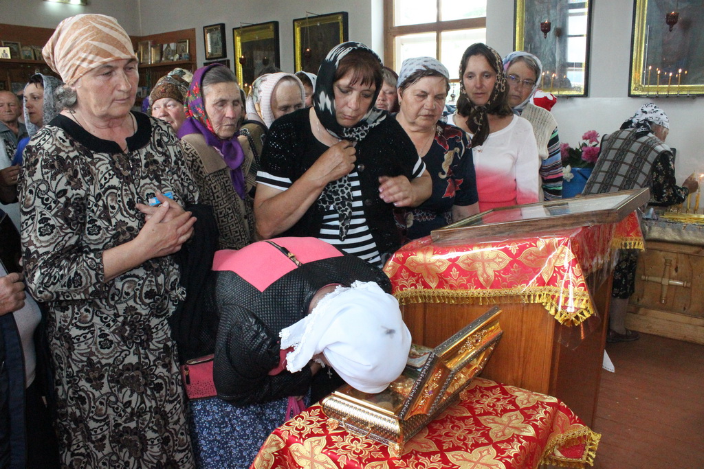 Во время совершения праздничного вечернего Богослужения прихожане с благоговением прикладывались к мощам святого великомученика.