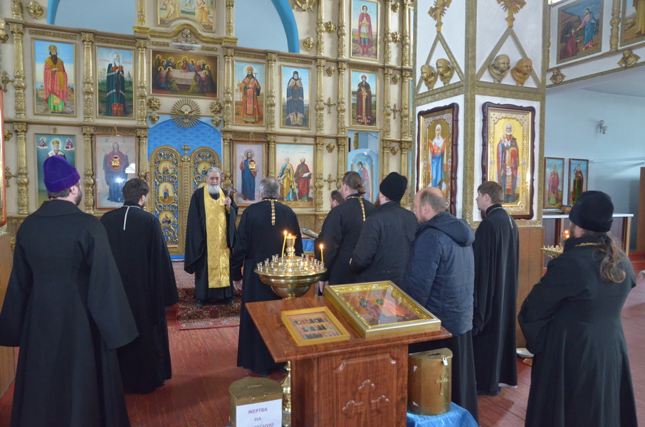 14 декабря в Петропавловском храме станицы Зеленчукской духовником Южного Карачаево-Черкесского церковного округа протоиереем Александром Тарнакиным было совершено Таинство Покаяния для духовенства округа.