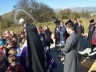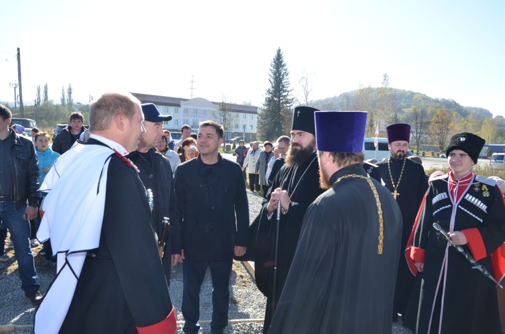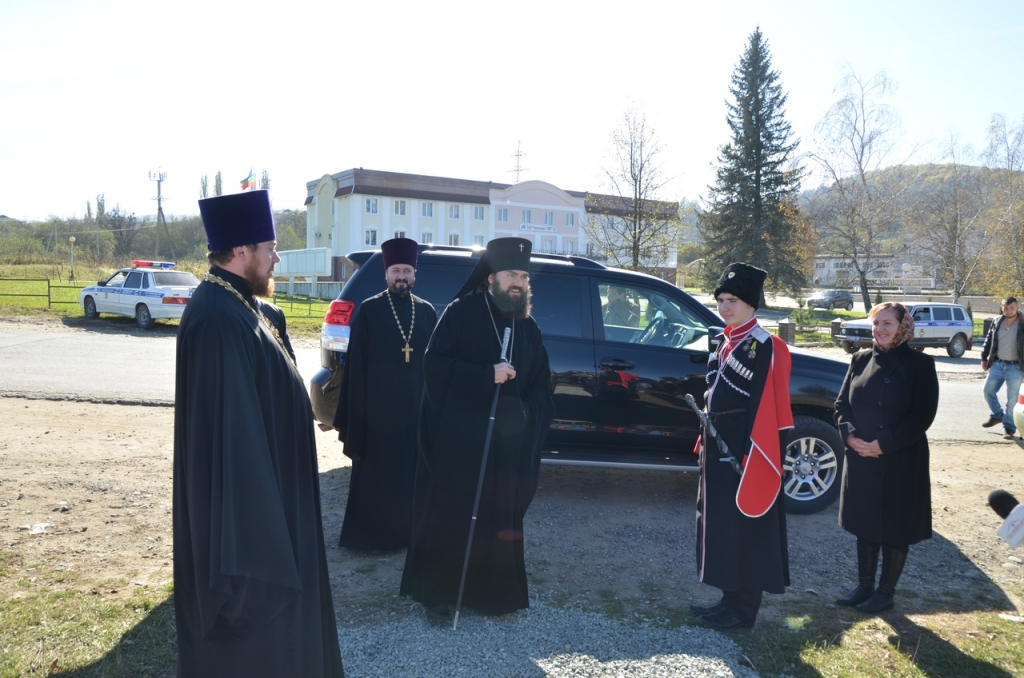 У входа в храм Владыку встречали глава администрации Зеленчукского района Сергей Самоходкин, заместитель главы администрации Зеленчукского района Петр Вильхов, казаки станицы Сторожевой во главе с атаманом Иваном Пустовым.