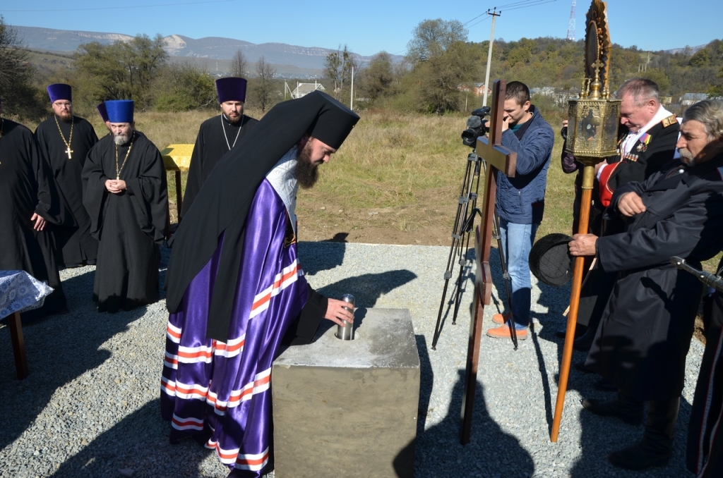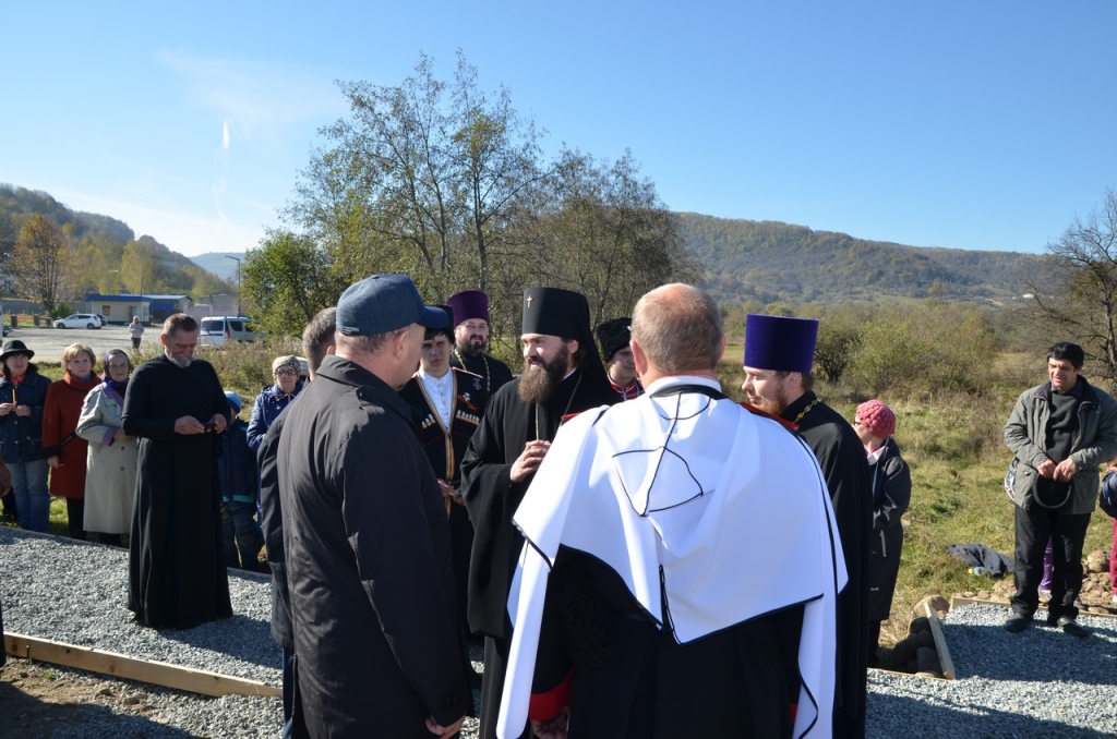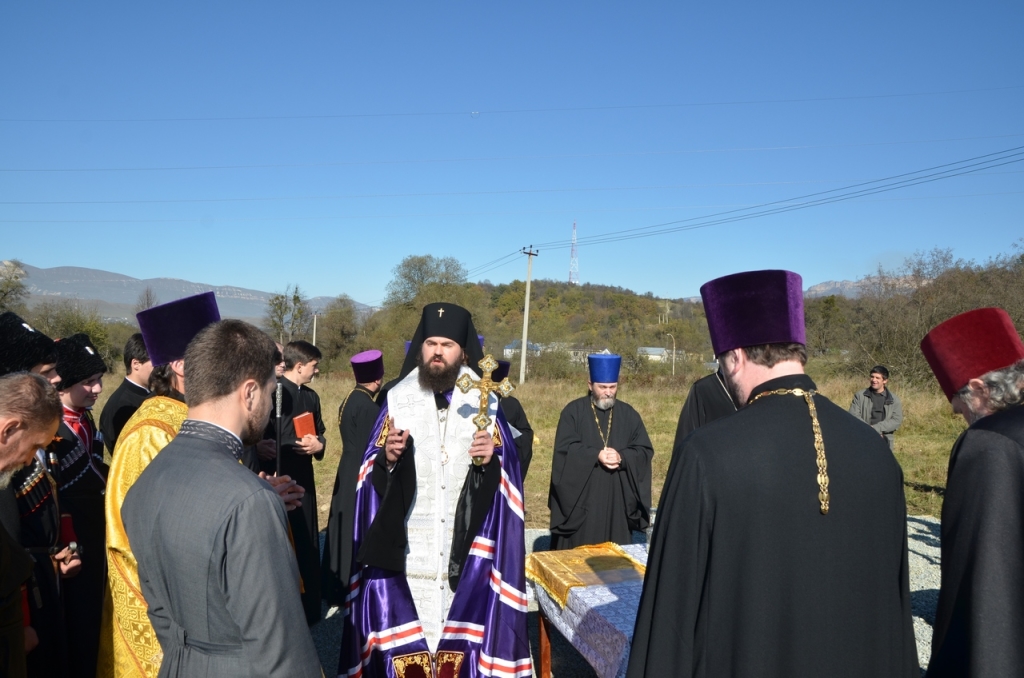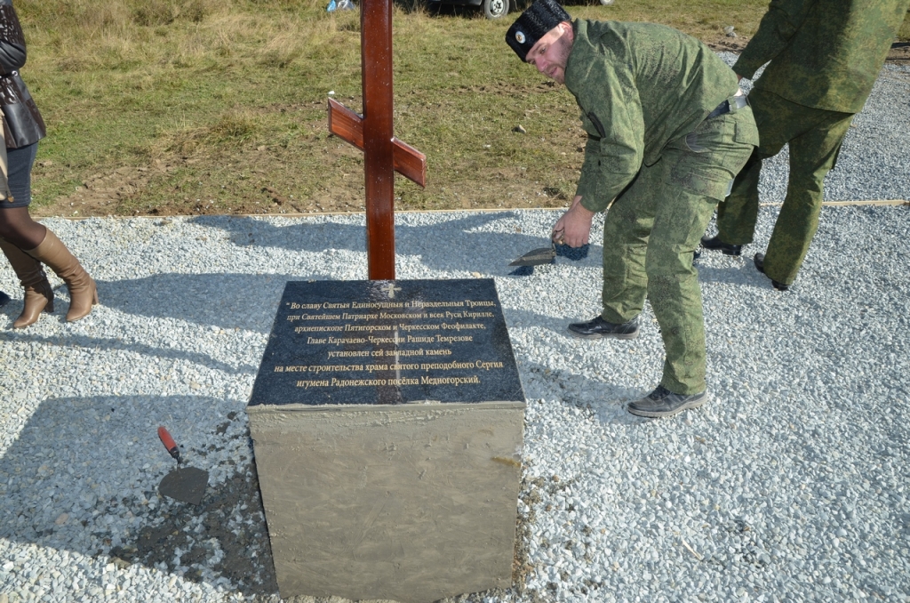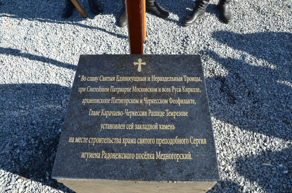 В тот же день в поселке Медногорском архиепископ Феофилакт совершил чин закладки первого камня в основание храма преподобного Сергия, игумена Радонежского. На закладке присутствовали заместитель главы администрации Урупского муниципального района Кемал Ижаев, генеральный директор Урупского горно-обогатительного комбината Владимир Котляров, казаки Урупского районного казачьего общества во главе с атаманом Медногорского казачьего общества Романом Тарановым, жители поселка Медногорский и учащиеся поселковой школы.
