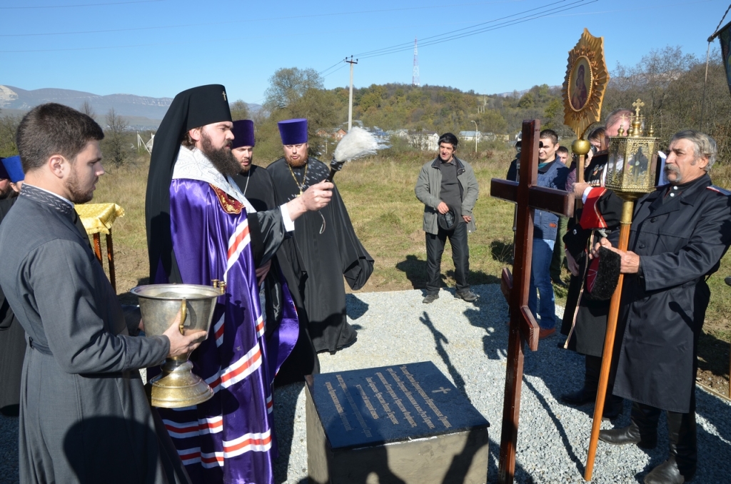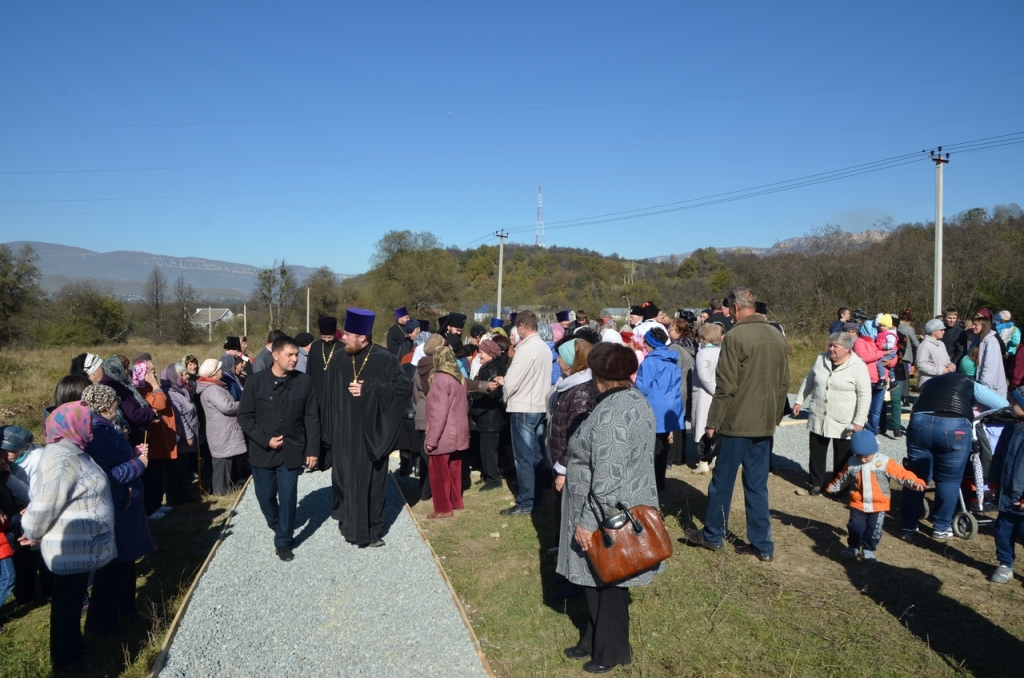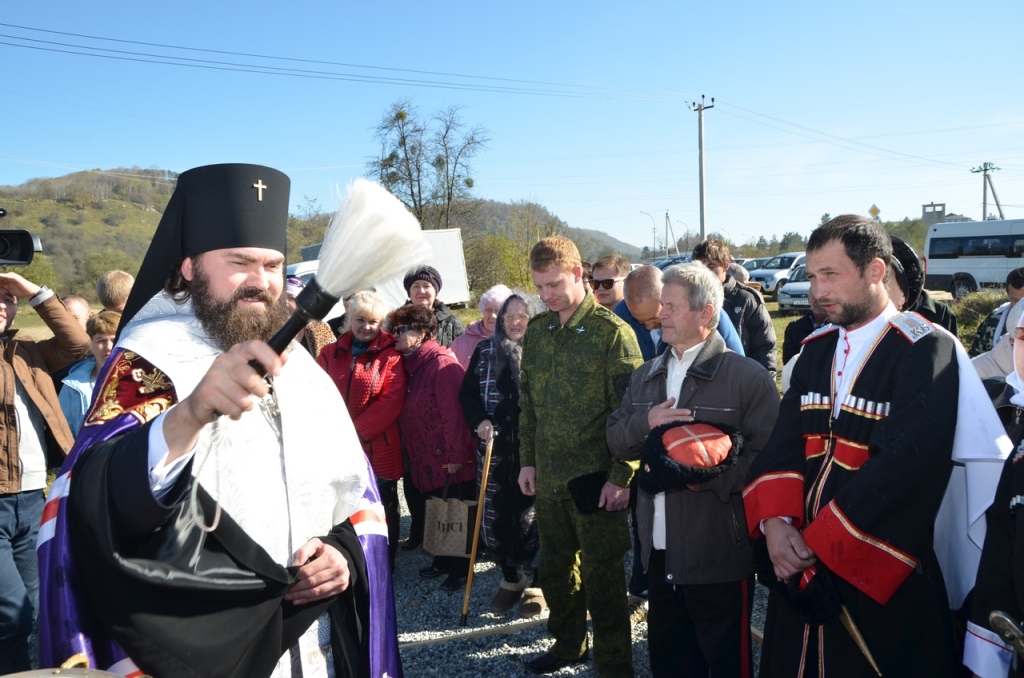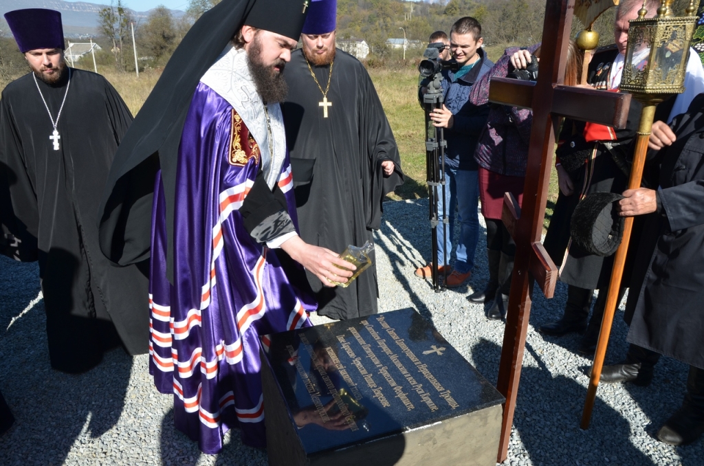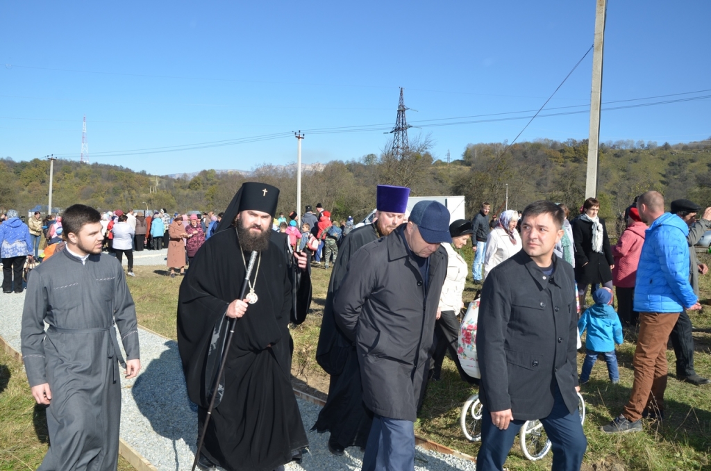 В тот же день в поселке Медногорском архиепископ Феофилакт совершил чин закладки первого камня в основание храма преподобного Сергия, игумена Радонежского. На закладке присутствовали заместитель главы администрации Урупского муниципального района Кемал Ижаев, генеральный директор Урупского горно-обогатительного комбината Владимир Котляров, казаки Урупского районного казачьего общества во главе с атаманом Медногорского казачьего общества Романом Тарановым, жители поселка Медногорский и учащиеся поселковой школы.