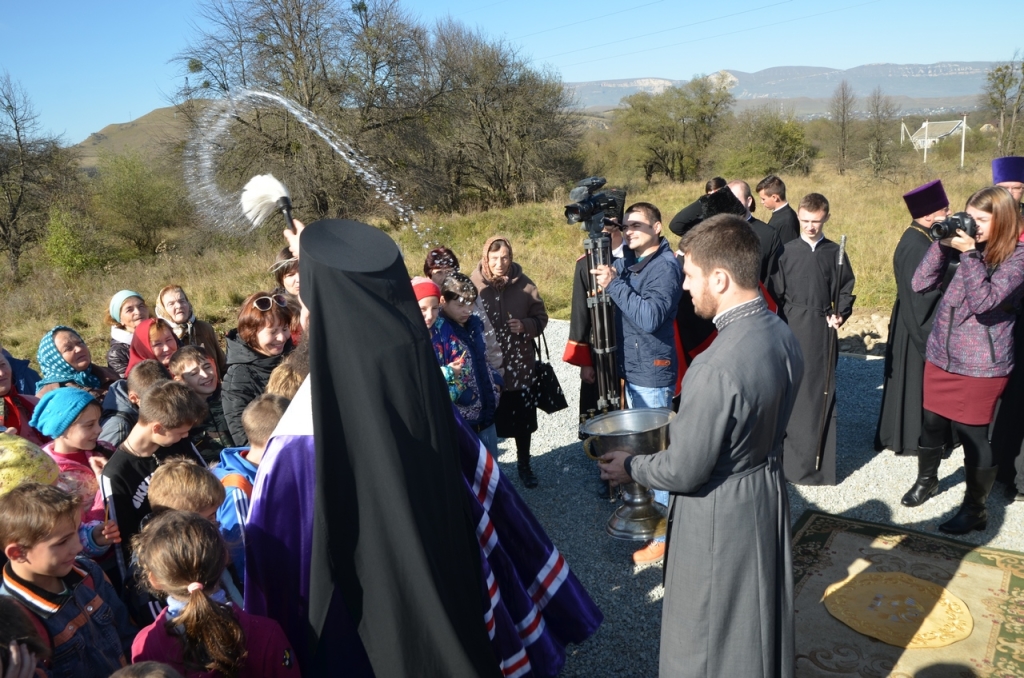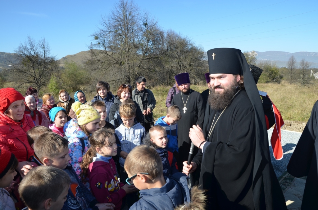 Вместе с Владыкой закладной камень к месту установки несли дети. В своем слове Архипастырь особенно обратил внимание, что храм строится именно для них — самых юных жителей поселка, что он станет тем наследством, которое мы оставляем своим детям.