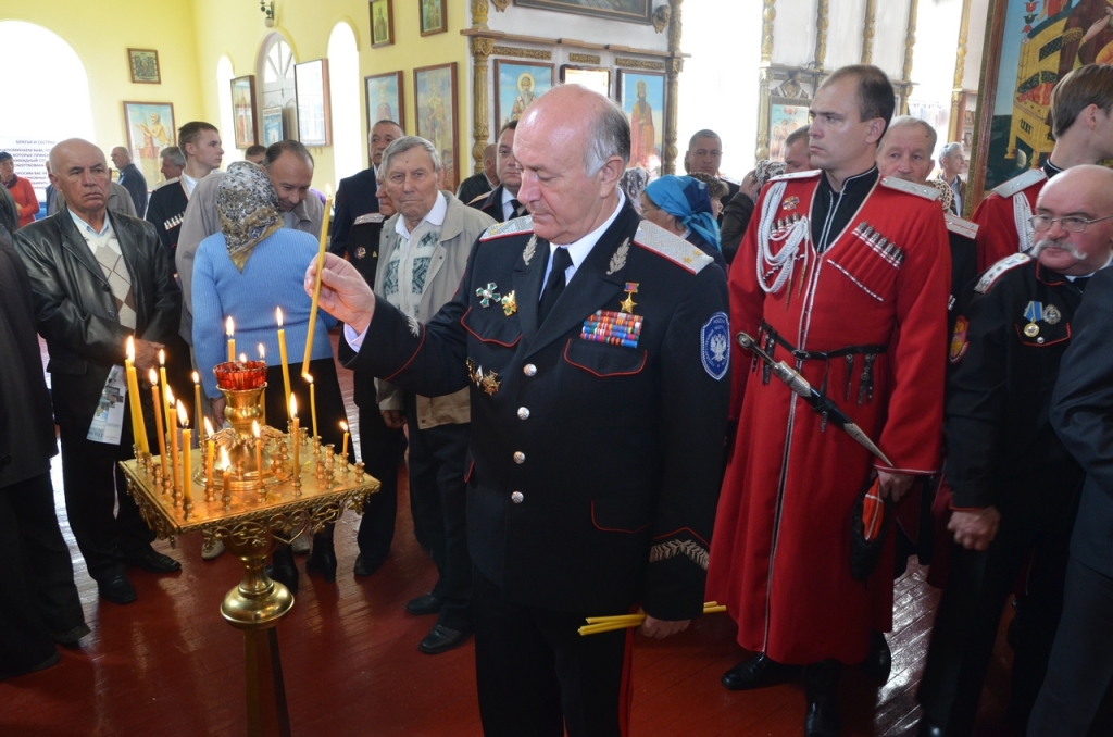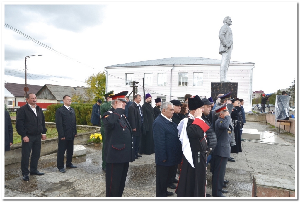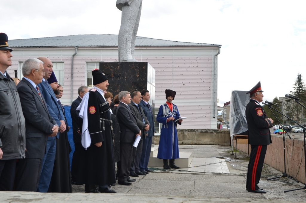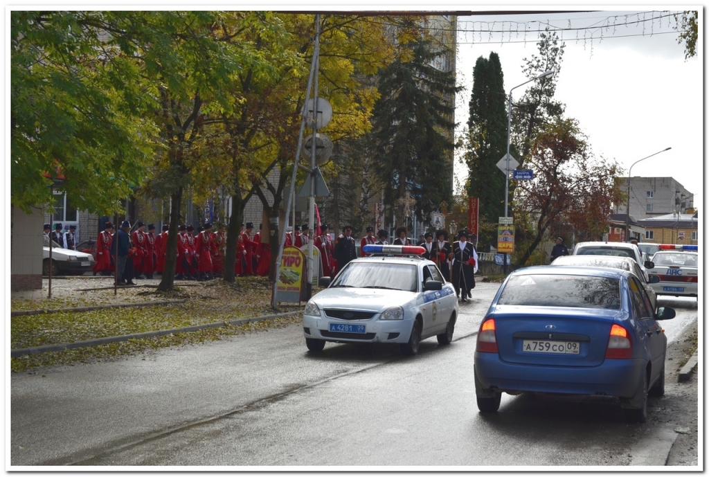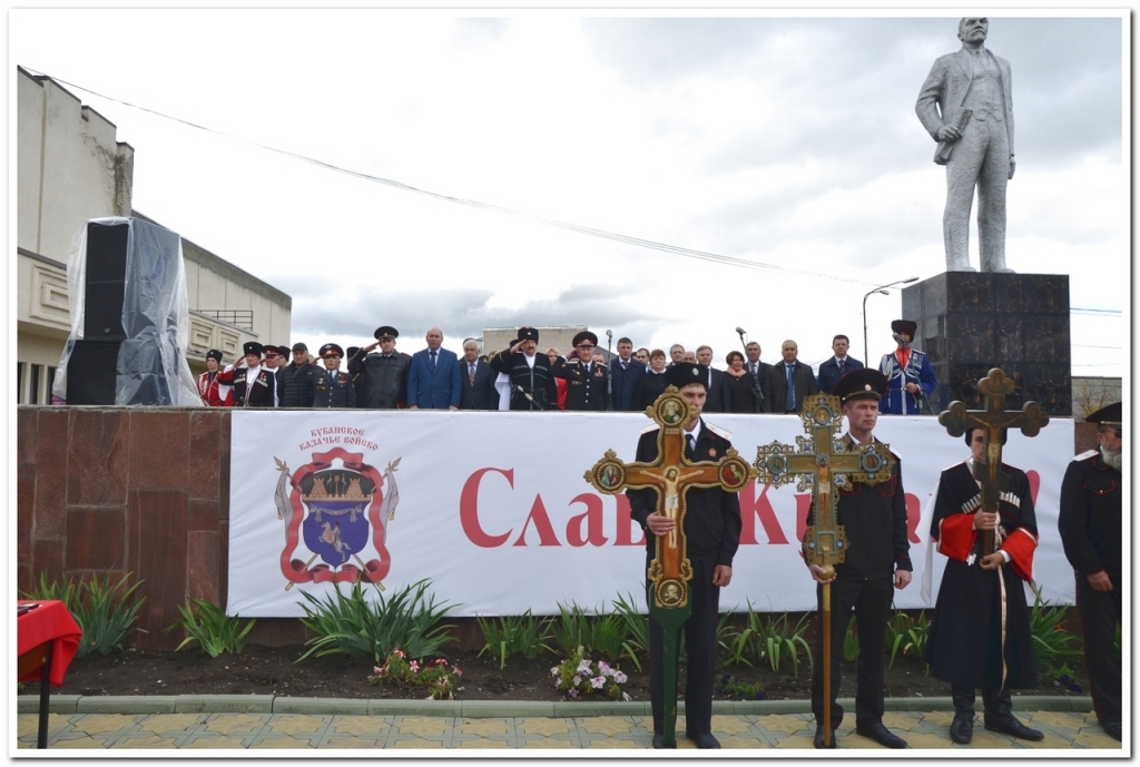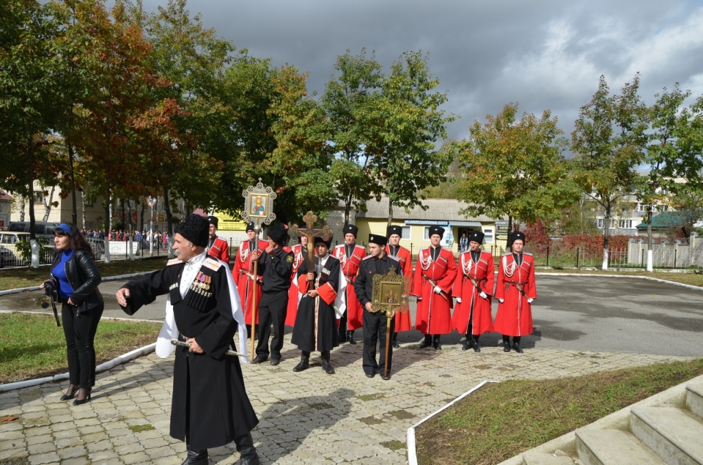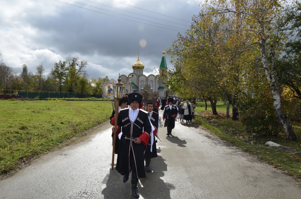 По окончании Богослужения колонна казаков прошла из храма к центральной площади станицы Зеленчукской где состоялся праздничный митинг.