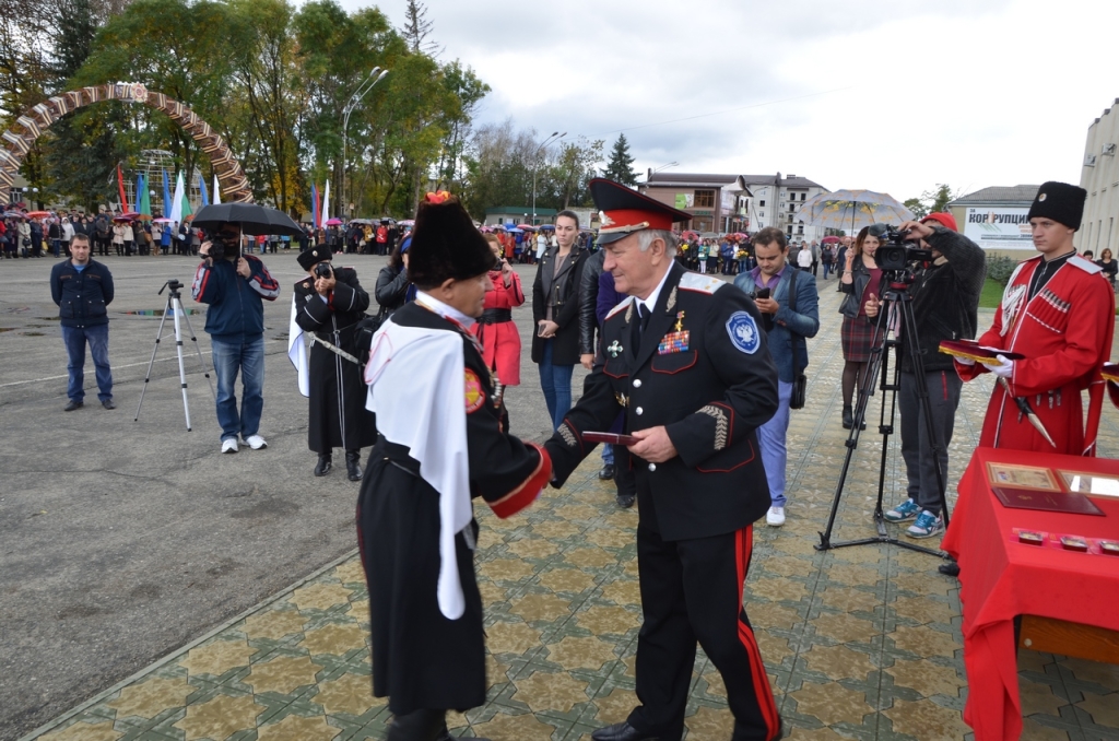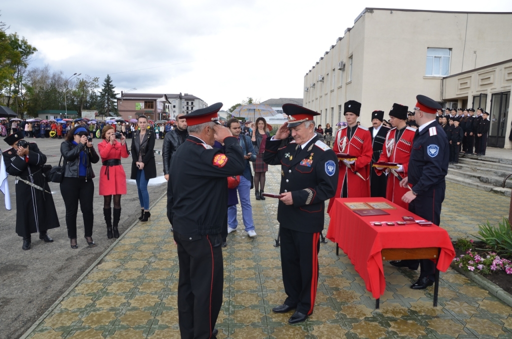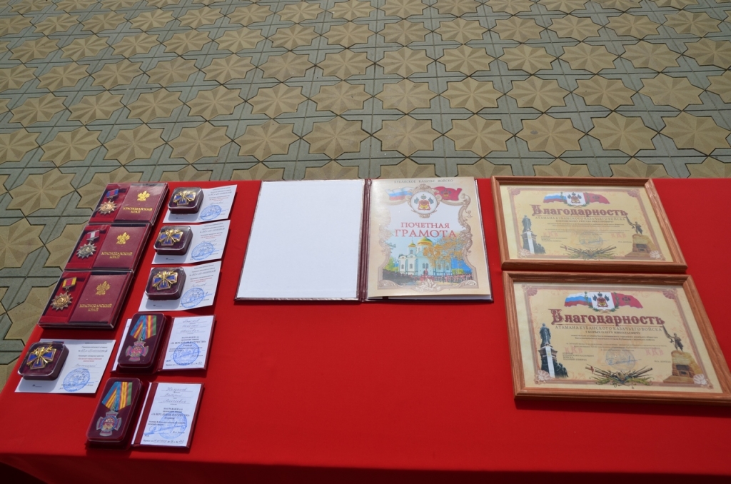 В ходе митинга атаман Кубанского Казачьего Войска казачий генерал Николай Далуда вручил награды отличившимся казакам.