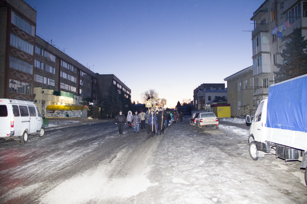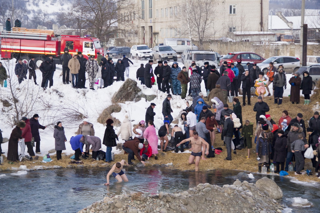 В праздник Богоявления по окончании Божественной литургии прихожане Петропавловского храма станицы Зеленчукской совершили традиционный Крестный ход от храма к реке Большой Зеленчук, где была оборудована Крещенская купель.