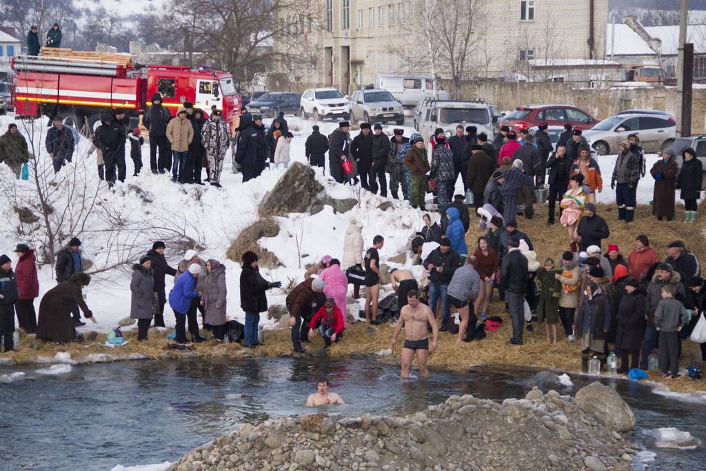 На реке было совершено Великое освящение воды.