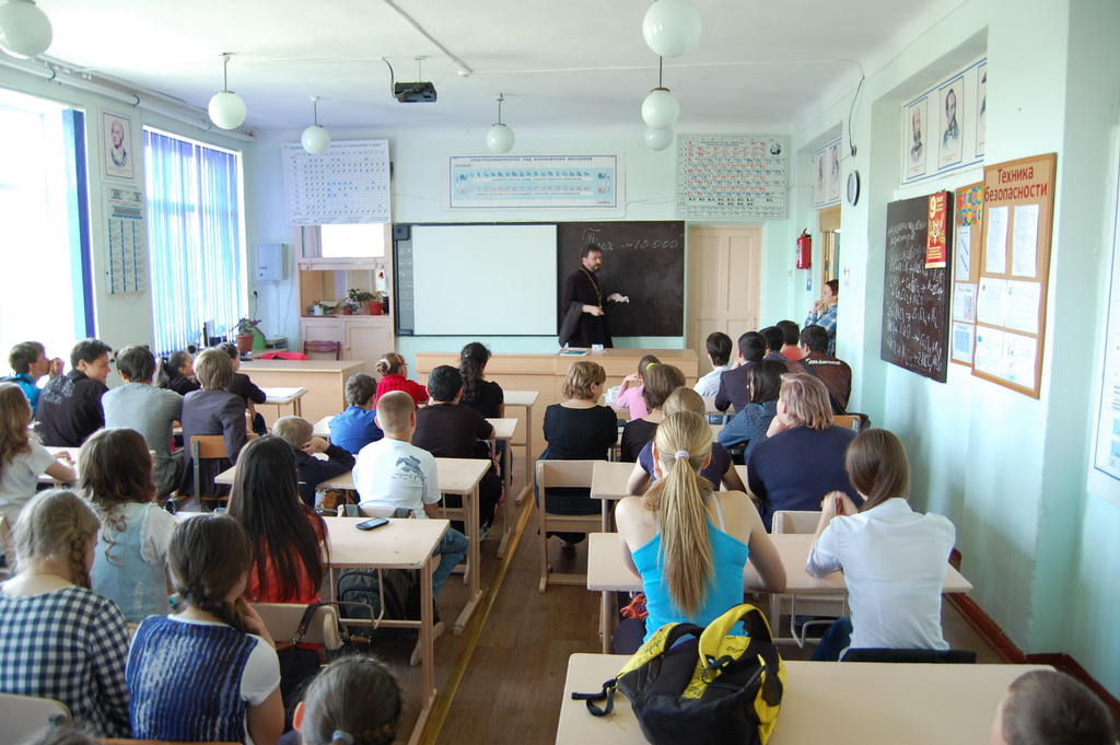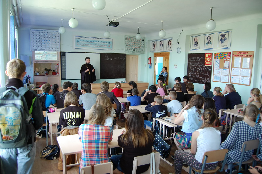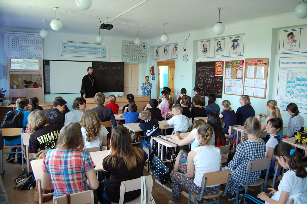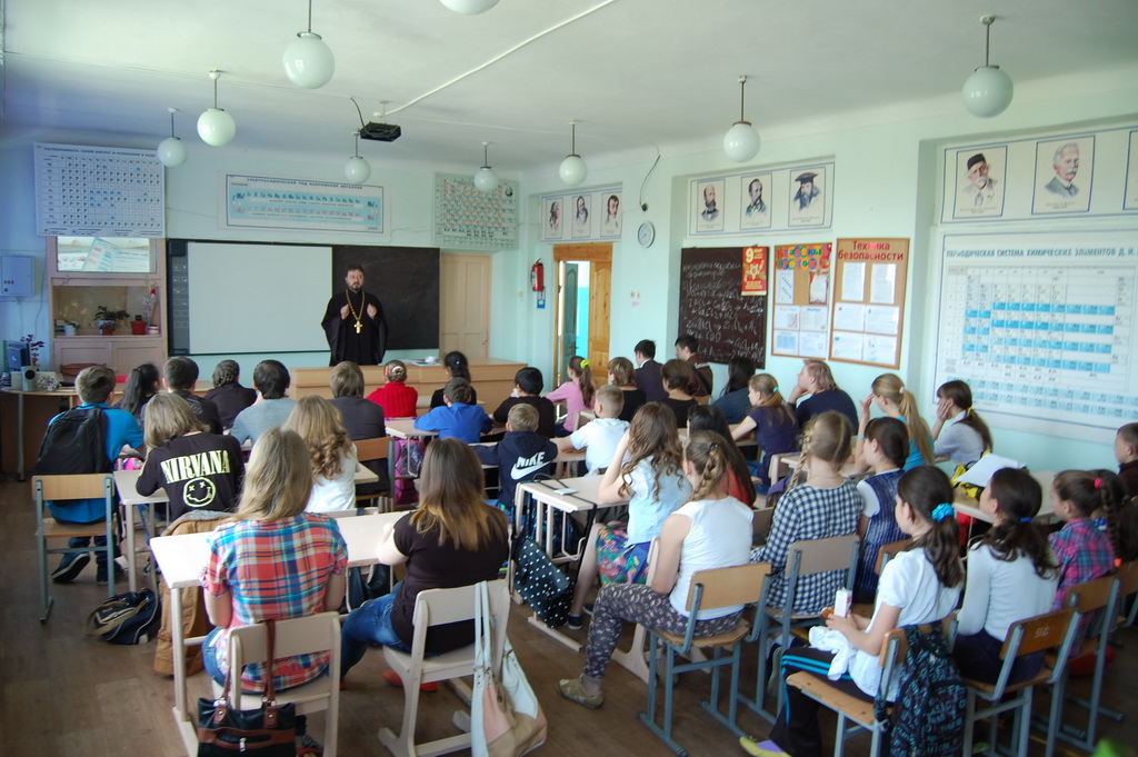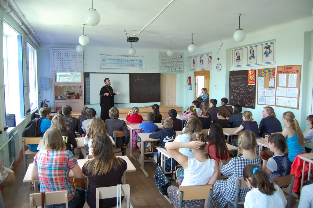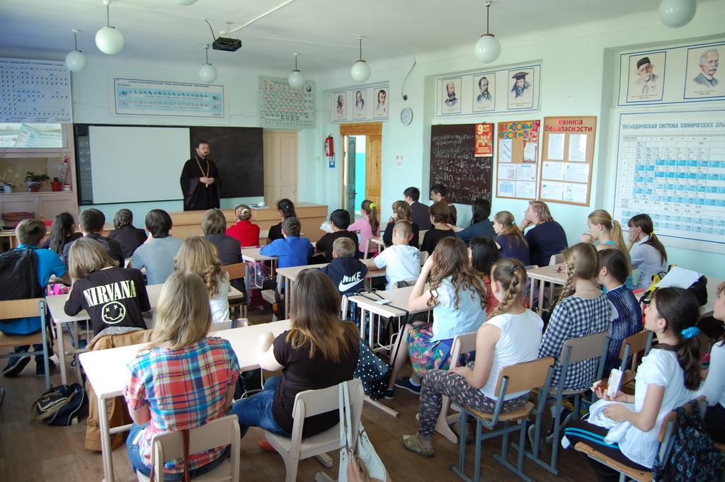 26 мая в Средней школе №1 станицы Зеленчукской благочинный Южного Карачаево-Черкесского церковного округа протоиерей Евгений Субтельный провел урок, посвященный сравнительному анализу значения некоторых церковнославянских слов, применительно к современному русскому языку.