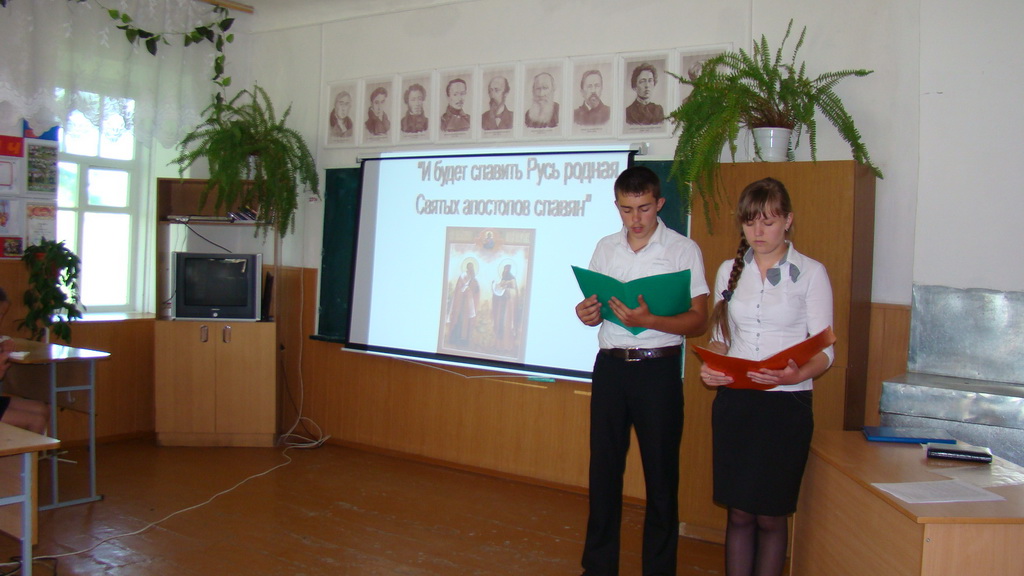 Учащиеся школы с помощью своих преподавателей подготовили презентацию о деятельности святых братьев и о появлении славянской письменности.