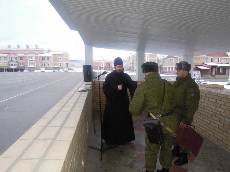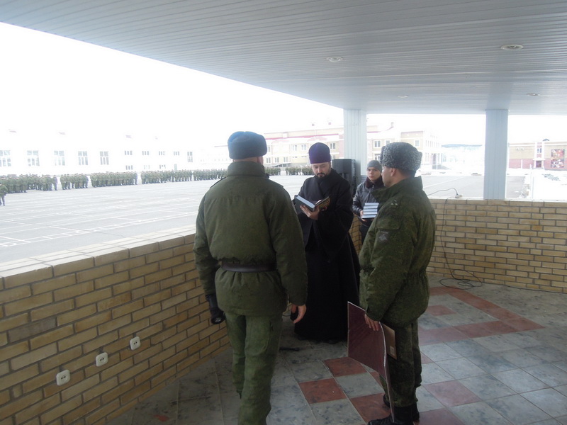 1 января благочинный Южного Карачаево-Черкесского округа протоиерей Евгений Субтельный и настоятель Свято-Никольского храма станицы Сторожевая иерей Андрей Кравченко приняли участие в торжественном построении солдат, несущих срочную службу в 34-й мотострелковой бригаде.Отец Евгений сердечно поздравил военнослужащих с наступающими праздниками Рождества Христова и Новым годом и вручил командиру бригады полковнику Зусько М.С. Архиерейскую грамоту. Михаил Степанович и личный состав бригады были награждены Преосвященнейшим Феофилактом епископом Пятигорским и Черкесским за постоянную поддержку, оказываемую приходам нашей Епархии.С особенной радостью отец Евгений вручил именные книги по Закону Божиему, подписанные Владыкой Феофилактом, военнослужащим, принимавшим участие в установке стекла на Лике Христа в Нижнем Архызе.