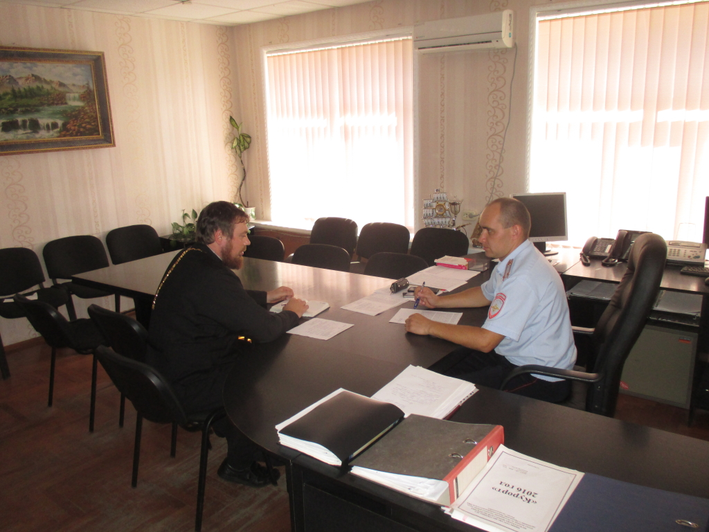 16 августа настоятель храма святых равноапостольных Кирилла и Мефодия станицы Преградной иерей Алексей Соловьёв встретился с начальником отделения полиции Урупского района подполковником полиции Гребневым Сергеем Владимировичем.