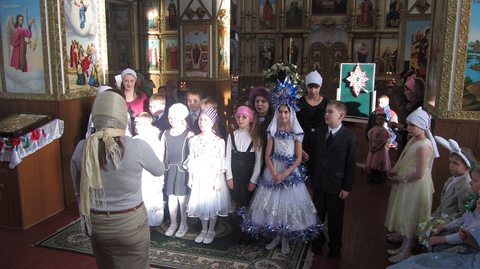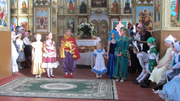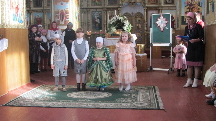 На празднике присутствовали священнослужители, прихожане храма, родители учащихся. Дети показали костюмированное представление, которое началось с пения всеми присутствующими в храме, тропаря праздника. В ходе выступления звучало много стихов, колядок, разыгрывались сцены из библейской истории о Рождестве. Старались все, особенно малыши, их детские лица светились неподдельной радостью рождественского чуда. В своем выступлении они искренне преподносили дары рожденному Младенцу. Старшие ребята старались быть серьезнее, ведь им доверили центральные сцены праздника. Красивым финалом представления стала композиция в стихах «В рождественскую ночь», которую показали выпускник школы Мельников Иван и группа самых младших учащихся,- это было очень трогательно и торжественно.