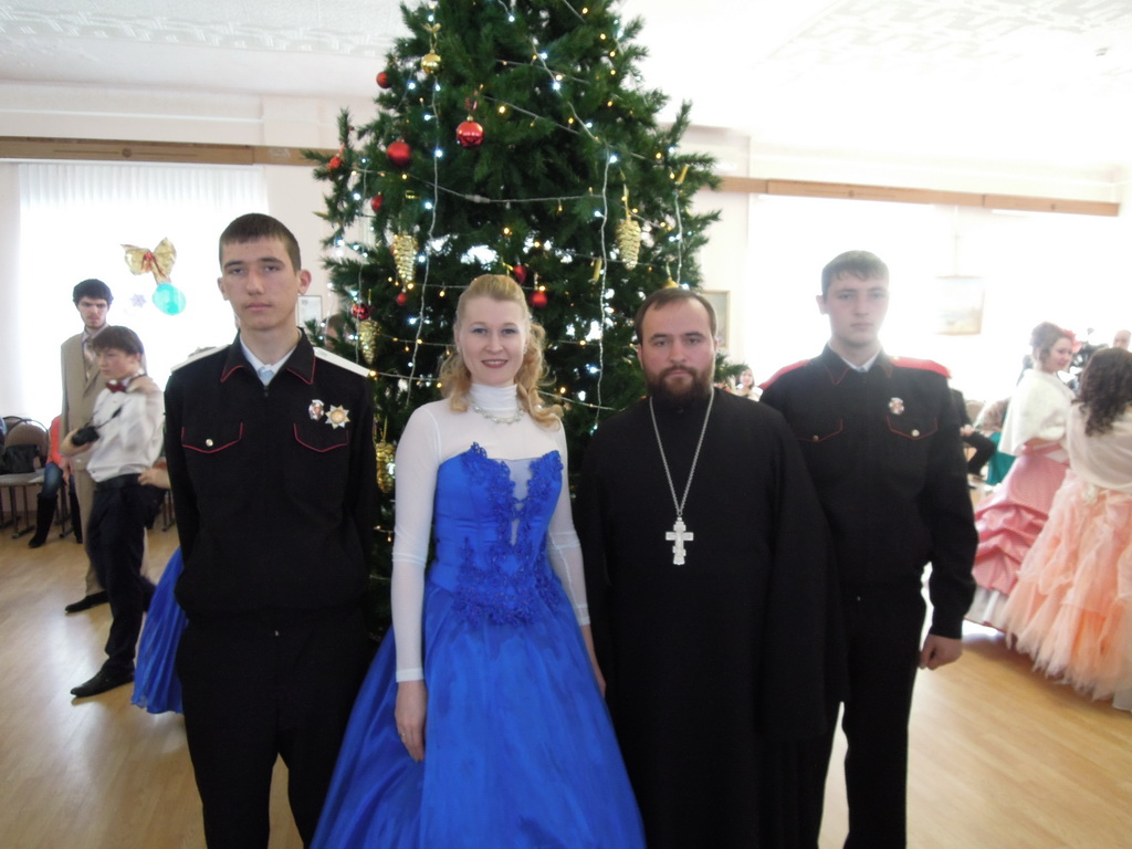 Южный Карачаево-Черкесский церковный округ на балу представили юные казаки Зеленчукского казачьего общества Ефим Черноусов и Сергей Пономаренко, а также молодые работники культуры Анна Запорожец и Дмитрий Дибижев.