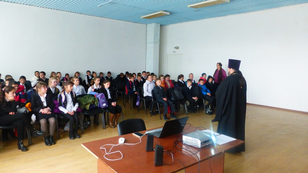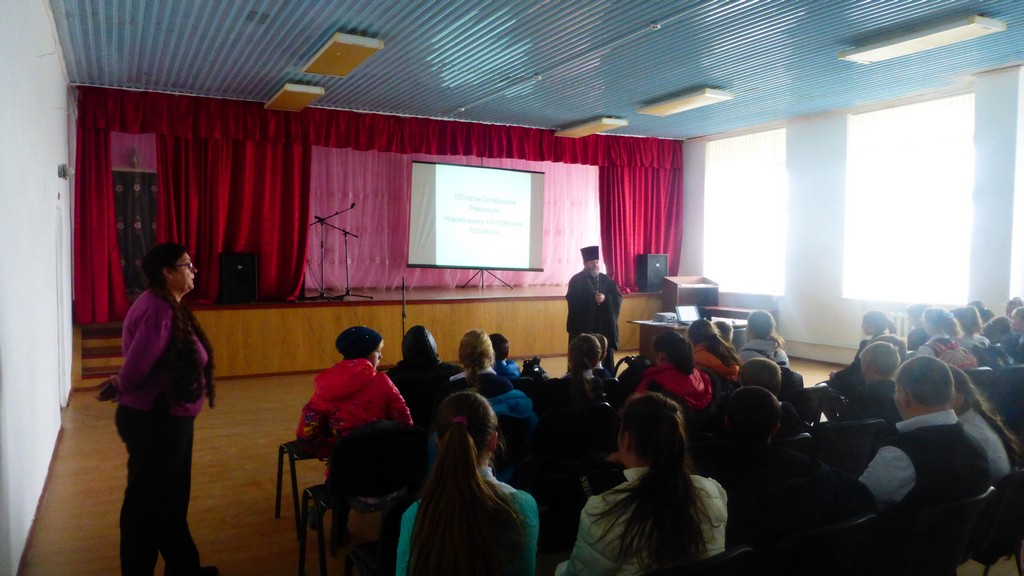 Штатный священник Петропавловского храма протоиерей Алексий Гончаренко провел в МКОУ «СОШ №4 станицы Зеленчукской» занятие, приуроченное к 100-летию Октябрьского переворота.