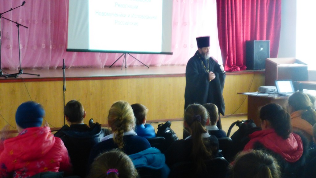 Учащимся 5 и 6-х классов священнослужитель рассказал о событиях, последовавших после прихода к власти партии большевиков и тех гонениях, которые были обрушены на Русскую Православную Церковь.
